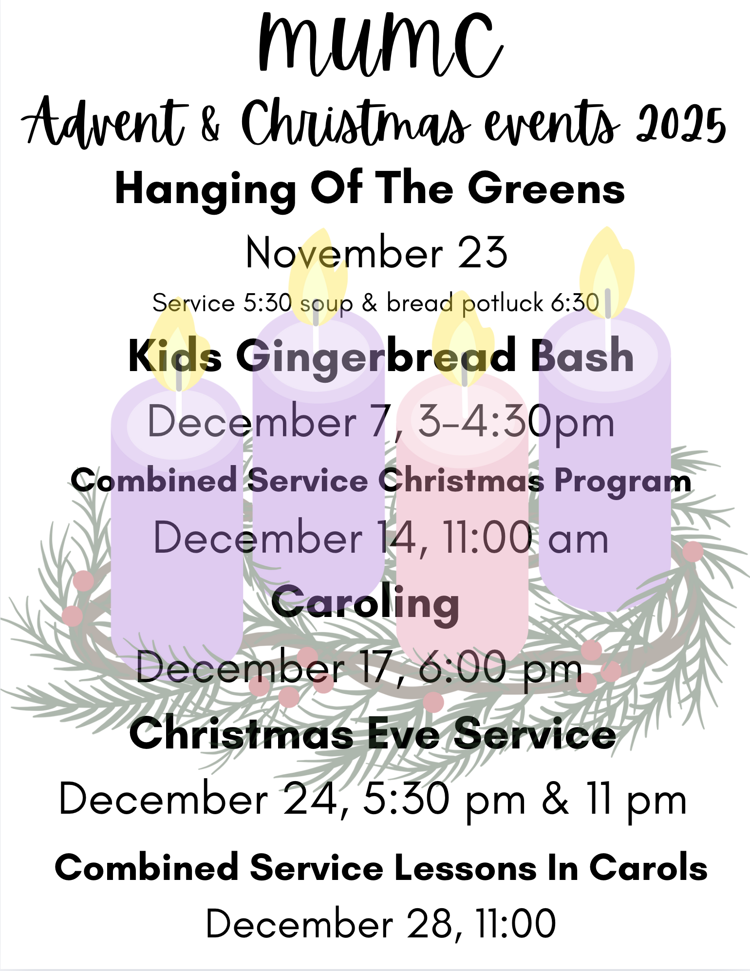 Advent & Christmas Event Dates